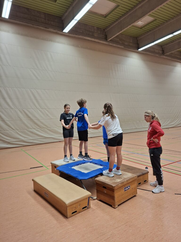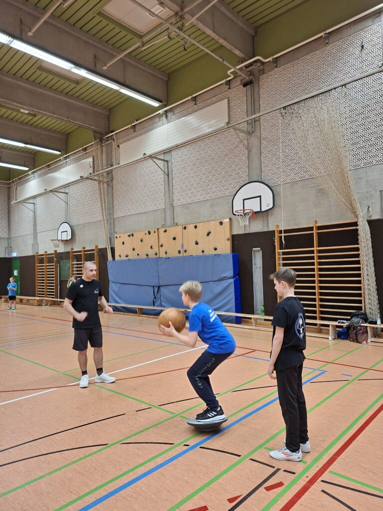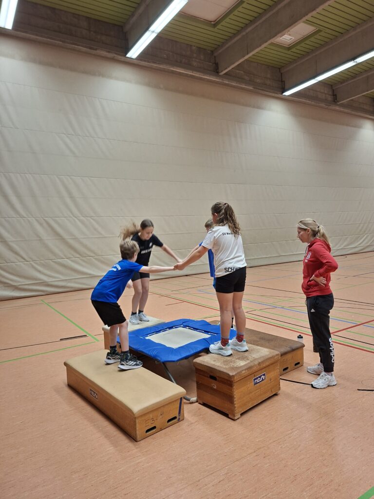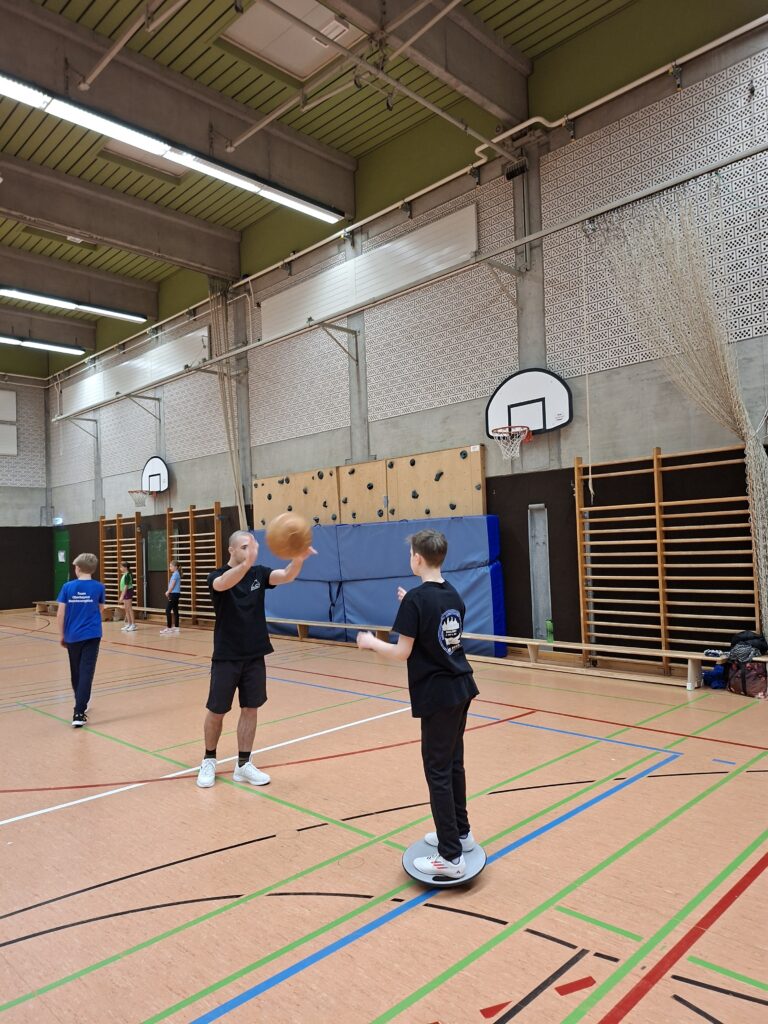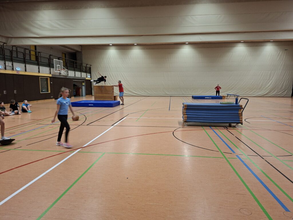 Ergänzt wurden beide Maßnahmen durch intensive Einheiten in der Turnhalle. Neben Lauf-ABC, Parcours und Sprungkrafttraining standen insbesondere Stabilisations- und Core-Übungen im Stationenbetrieb im Fokus. Die Kinder lernten, wie entscheidend Rumpfstabilität, Koordination und Explosivität für Starts, Wenden und eine stabile Wasserlage sind.
